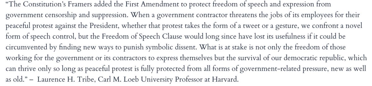 on her own time to a passing presidential motorcade, the contractor is undermining freedom of speech and must be held accountable for unlawful discharge
